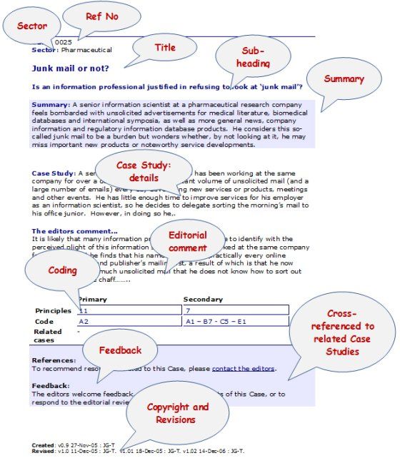 - Each Case study analyzed by subject, sector, principles in Ethical Codes.